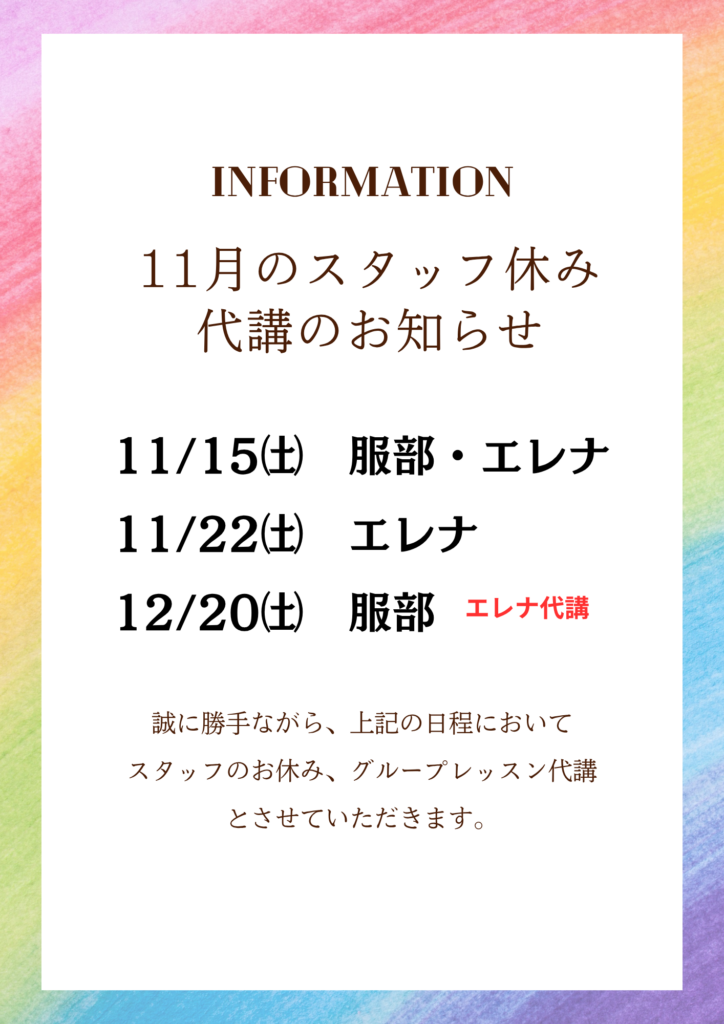 11月のスタッフお休み日程 お知らせ